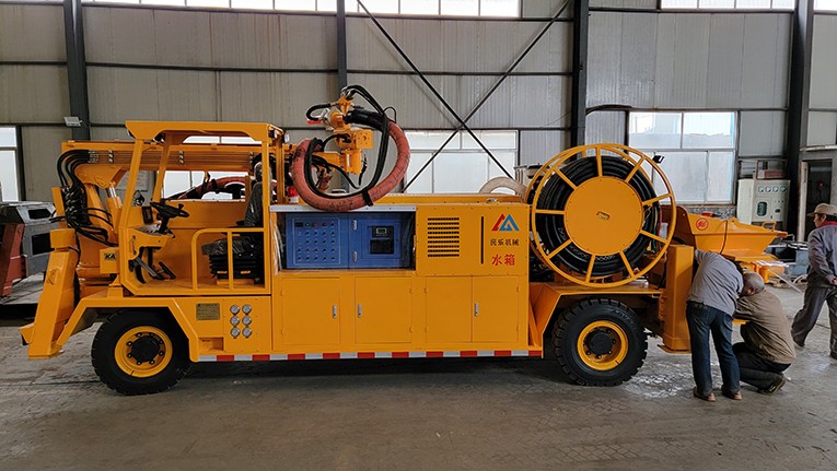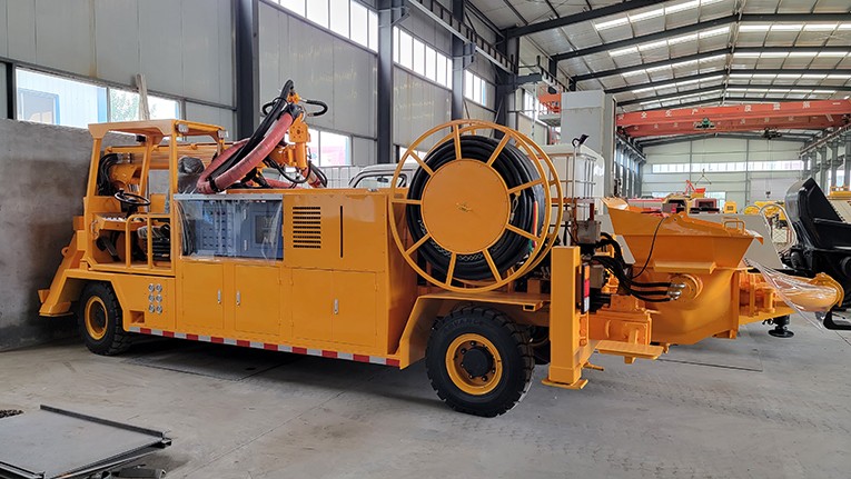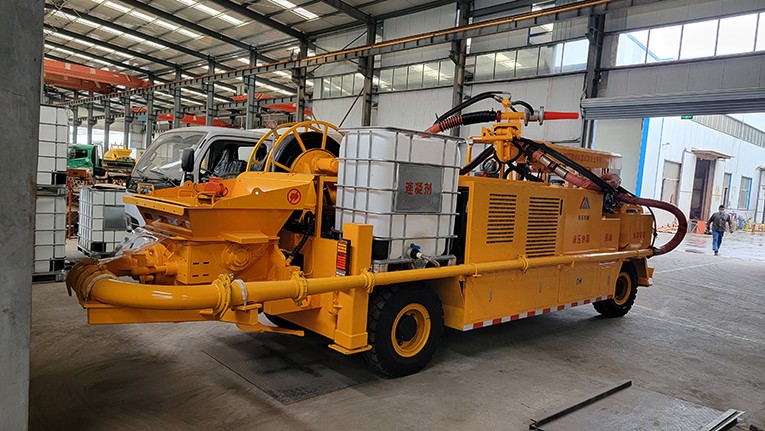 5. 在正常噴射施工中,電動(dòng)機(jī)驅(qū)動(dòng)它馳騁在工地上。即便在電力中斷的情況下,柴油機(jī)也能短暫地驅(qū)動(dòng)泵送系統(tǒng),讓噴射機(jī)械手以較慢的速度進(jìn)行各種操作,確保施工的連續(xù)性。