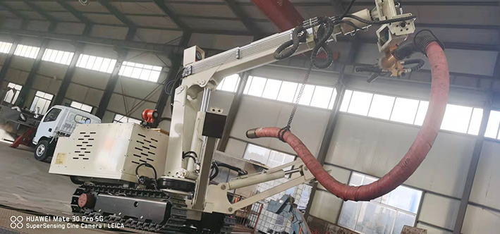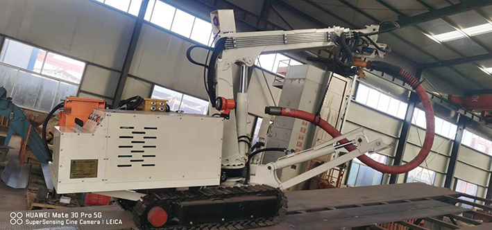CPF-6OLY型礦用混凝土輔助噴射車(以下簡(jiǎn)稱噴漿機(jī)械手)主要用于煤礦井下煤巷、半煤巷、全巖石掘進(jìn)巷道與混凝土噴射機(jī)配套使用,代替人工噴漿作業(yè),滿足噴漿工藝要求,整機(jī)小巧、靈活、耐用、適應(yīng)能力強(qiáng),可用于大型噴漿機(jī)組無法進(jìn)入的巷道,實(shí)現(xiàn)噴漿無線操作、機(jī)械化作業(yè),減輕人工噴射勞動(dòng)強(qiáng)度大的問題。整機(jī)完全采用無線遙控操作、液壓控制,工作性能安全可靠。下車液壓系統(tǒng)負(fù)責(zé)行走、上車液壓系統(tǒng)負(fù)責(zé)噴射,上下車動(dòng)作手動(dòng)切換,防止誤操作。整機(jī)具有結(jié)構(gòu)穩(wěn)定可靠,動(dòng)作平穩(wěn),噴射范圍大,自由度多,遙控操作靈活,噴射平整度好,回彈少,噴射效率高、施工質(zhì)量好,可實(shí)現(xiàn)遠(yuǎn)程控制,操作人員可位于在可視情況好、粉塵濃度少,較為安全的位置操作,保證使用人員安全。